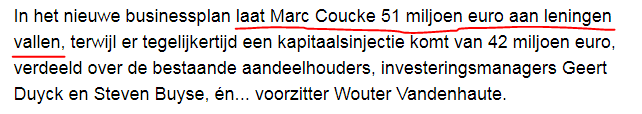 Beste, Marc dank voor je inzet om de club uiteindelijk op het goede spoor te krijgen, goed dat Wouter en zijn collega zich inkopen, nu juist nog die dwarsliggers Van Vandenstock en die Davignon eruit krijgen en we zijn vertrokken.