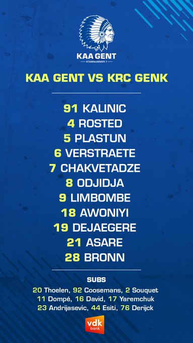 Yves Vanderhaeghe bouwt verder op de goede prestatie tegen Antwerp. Brecht Dejaegere verschijnt ook nog eens aan de aftrap.